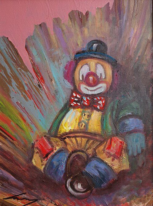 Umetnicka slika Klovn-3-tehnika ulje na platnu-Slikar Ivan Vanja Milanovic-Format slike sa ramom 44×54 cm-bez rama 30×40 cm-sertifikat-Cena slike 11800 dinara