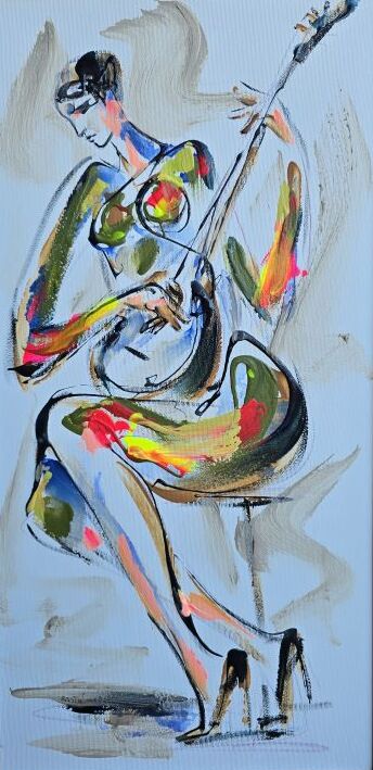 Umetnička slika Mandolina 1 slikar Dušan Rajšić – tehnika akril na platnu – format slike sa ramom 66×36 cm – bez rama 60×30 cm – Cena umetničke slike 16.520 dinara