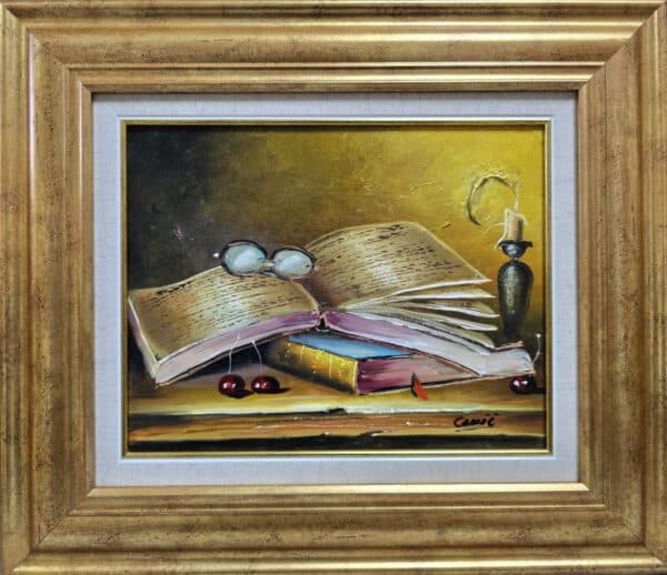 Umetnička slika Mrtva priroda mala 1 slikar Dragan Canić- tehnika ulje na platnu – veličina slike bez rama 22×28 cm – sa ramom 38×44 cm – cena umetničke slike 9440 dinara