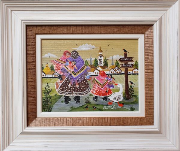 Umetnička slika Poseta baki nedeljom slikarka Zuzana Vereski-Naiva-Kovacica-tehnika ulje na platnu kasiranona lesonitu-Format slike sa ramom 28×33 cm-bez rama 15×20 cm-sertifikat – Cena slike 27140 dinara