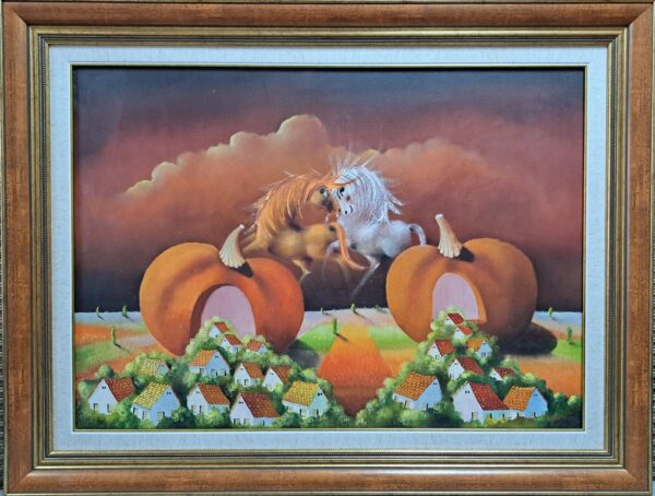 Umetnička slika Rodilo je rodilo slikar Janoš Mesaroš – tehnika ulje na platnu – format slike sa ramom 66×86 cm – bez rama 50×70 cm – Cena umetničke slike 212400 dinara