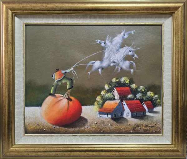 Umetnička slika slikar Janoš Mešaroš Hvatač konja II – tehnika slikanja: kombinovana pastel-ulje tehnika – format slike sa ramom 56×66 cm – bez rama 40×50 cm – Cena umetničke slike: 70.800 dinara – luksuzno uramljena i sa sertifikatom autentičnosti