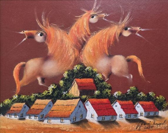 Umetnička slika slikar Janoš Mešaroš Trio snova II – tehnika slikanja: kombinovana pastel-ulje tehnika – format slike sa ramom 56×66 cm – bez rama 40×50 cm – Cena umetničke slike: 70.800 dinara – luksuzno uramljena i sa sertifikatom autentičnosti