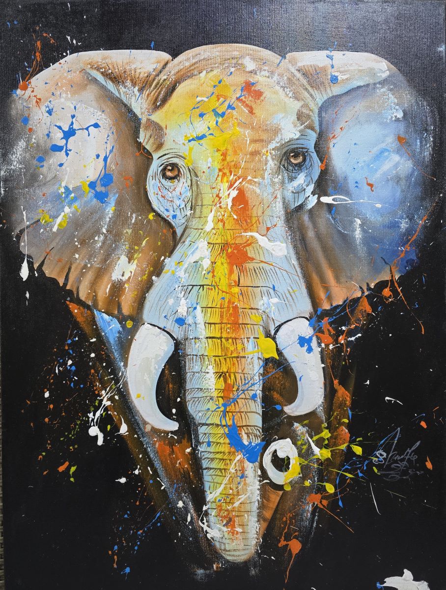 Umetnička slika Slon 1 slikar Sharih (Zanzibar)- tehnika akril na platnu – veličina slike bez rama 80×60 cm – cena umetničke slike 41300 dinara