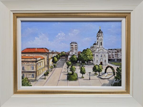 Umetnička slika Smederevo centar slikar Jadran Đukić- tehnika ulje na platnu – veličina slike bez rama 20×30 cm – sa ramom 30×40 cm – cena umetničke slike 11800 dinara