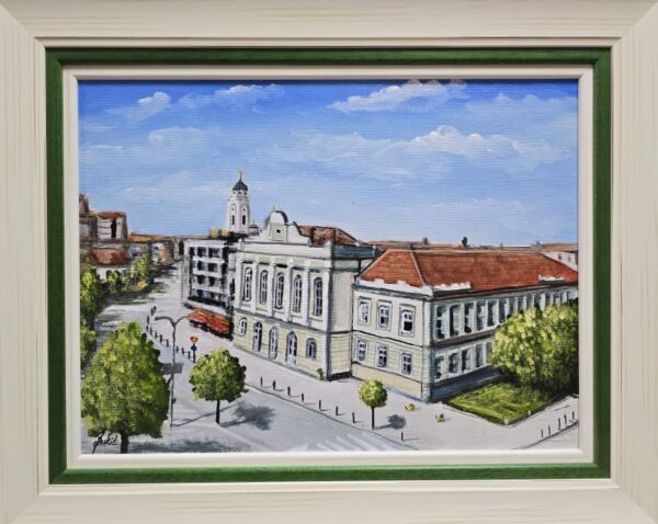 Umetnička slika Smederevo gimnazija slikar Jadran Đukić- tehnika ulje na platnu – veličina slike bez rama 30×40 cm – sa ramom 40×50 cm – cena umetničke slike 16520 dinara